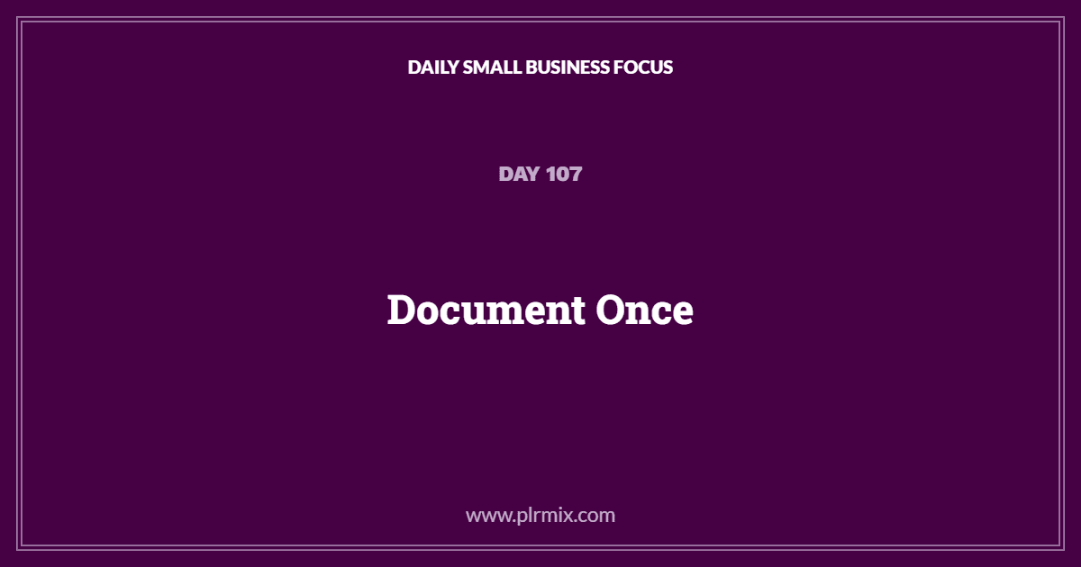 Daily Small Business Focus – Day 107: Document Once