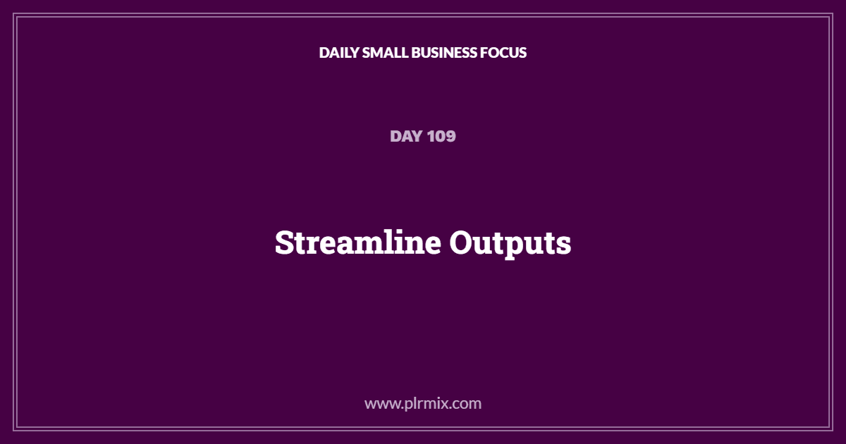 Daily Small Business Focus – Day 109: Streamline Outputs