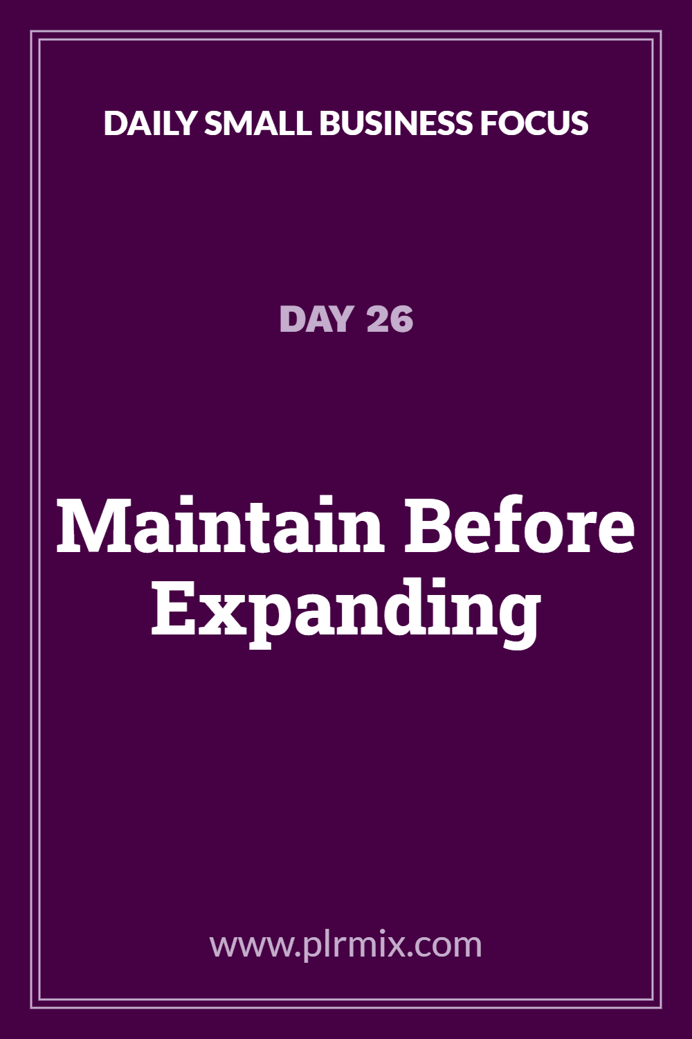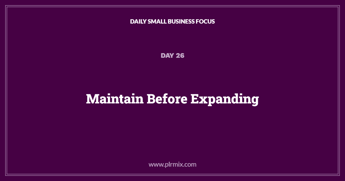Daily Small Business Focus – Day 26: Maintain Before Expanding